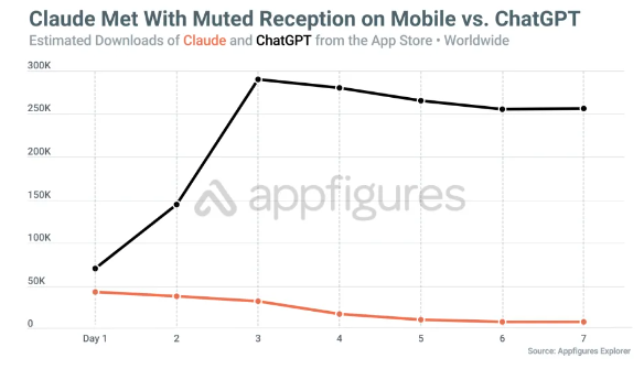 那么,缘何眼下Claude上线苹果应用商店后的境况,会如此冷清呢?