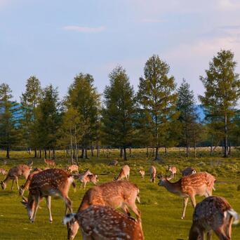 兴安神鹿园背后大片的湿地森林拍梅花鹿很美!
